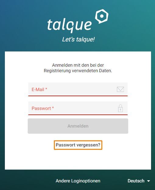 - Gehen Sie zu unserer Webseite talque.com und klicken Sie auf Login